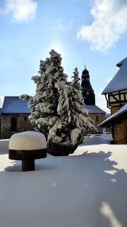 ...auch der Brunnen auf dem Klosterhof übte sich in Kunst...